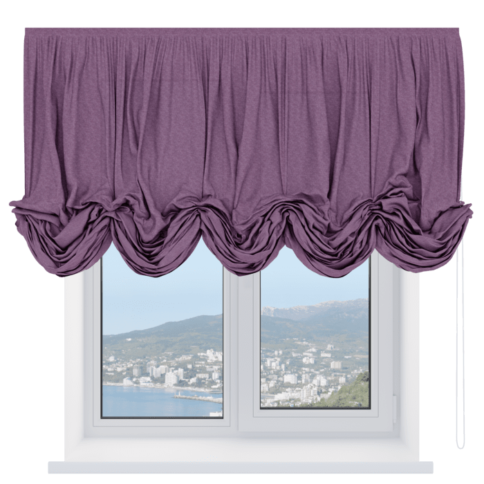 Австрийская штора лён кашемир сиреневый, карниз верёвочный