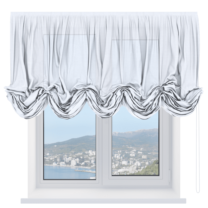 Австрийская штора лён белоснежный, карниз верёвочный