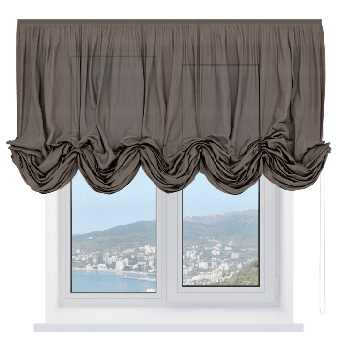 Австрийская штора лён кашемир коричневый, карниз верёвочный